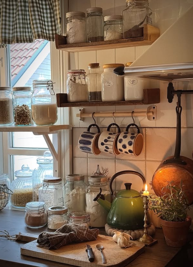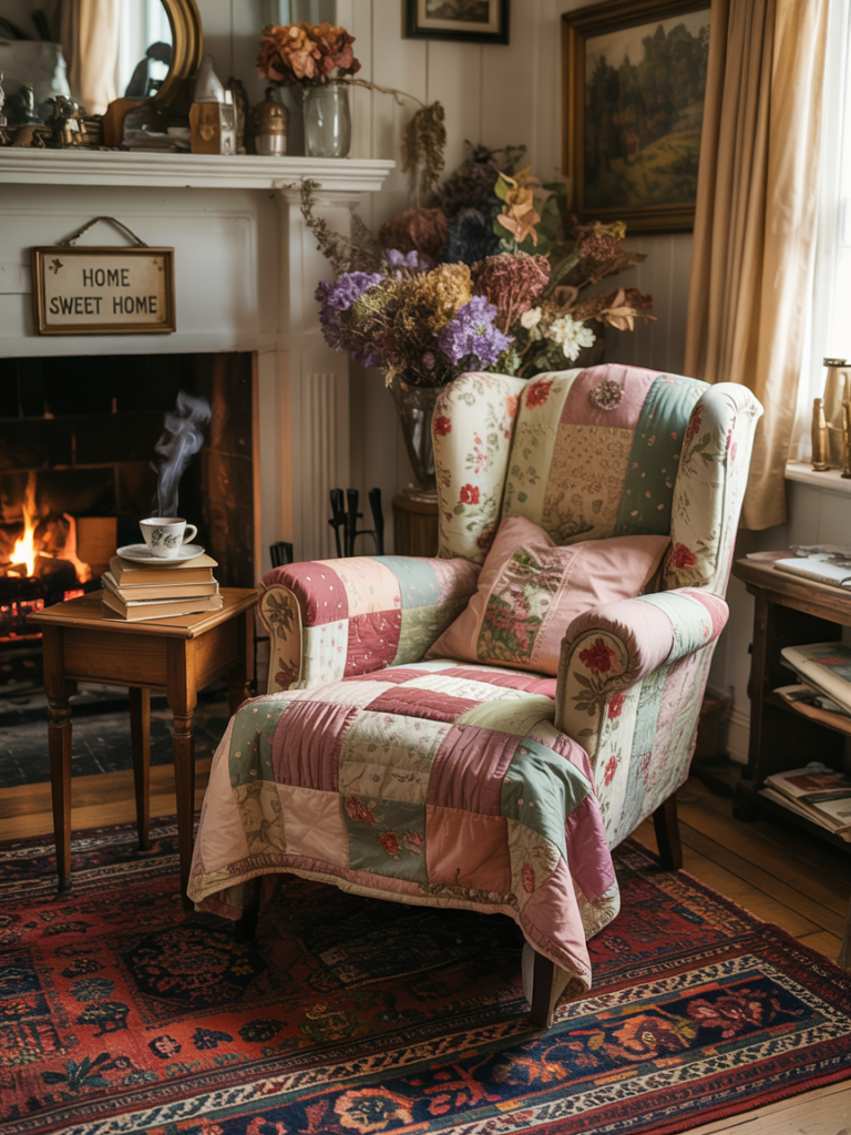 Cottagecore is all about creating a warm, nostalgic space that feels cozy, lived-in, and close to nature — like a charming countryside cottage even if you live in the city. Think soft, muted colors, vintage-style furniture, floral prints, and lots of natural materials like wood, linen, and wicker. It’s not about perfection or matching everything — it’s about mixing textures and pieces that make your home feel gentle and comforting. Add little touches like a gingham tablecloth, fresh flowers in a ceramic pitcher, or a wicker basket by the sofa, and you’ll start to feel that calm, storybook vibe cottagecore is known for.