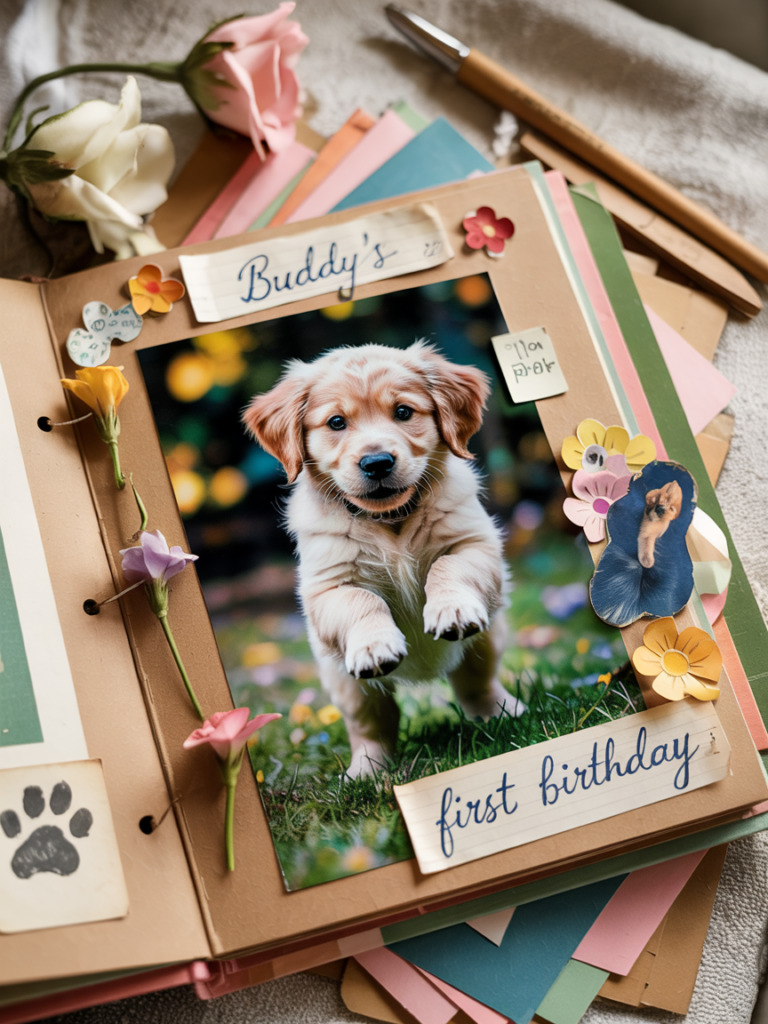 - Include paw prints, captions, and little keepsakes like tags or bows.