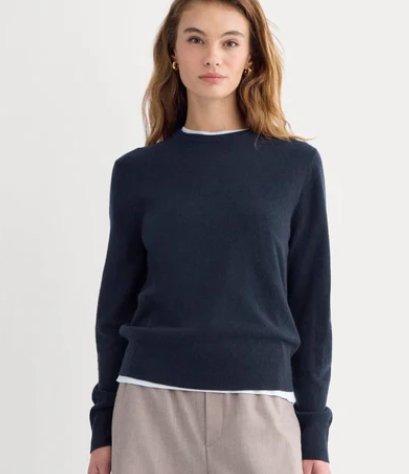 This is the foundation of every elegant wardrobe. A soft cashmere crew neck instantly gives you that “I have my life together” energy. It’s minimal, polished, and perfect for layering. Go for neutrals — beige, grey, cream, or navy — they always look refined. You don’t need real cashmere to get the look; a good quality knit in a similar shade works just as well.